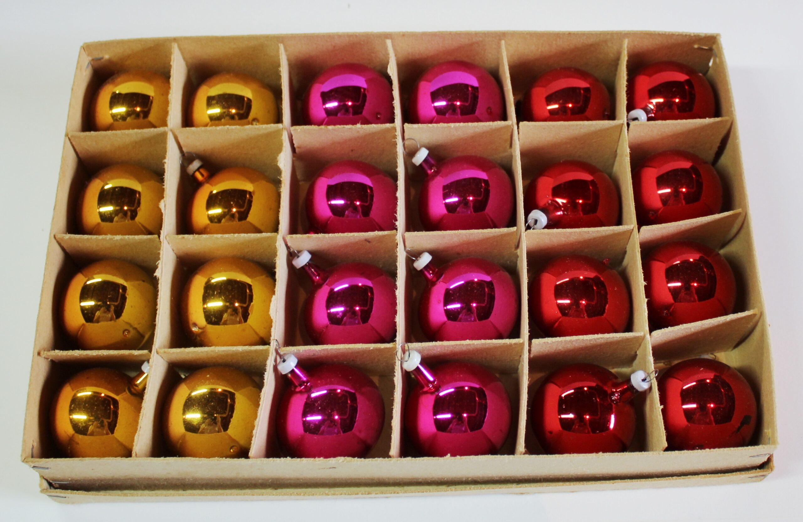 Caixa de bolinhas natalinas de vidro Voltar Anexos 031 Metadados Número tombo31TipologiaObjetos domésticosDenominaçãoCaixa de bolinhas natalinas de vidroDescriçãoCaixa com esferas de vidro para ornamentação de árvores de natal. Conjunto de 24 bolas nas cores amarelo, rosa e vermelho.Data do objeto1950Informações de origem e procedênciaAdquirido em feira de antiguidades em São Paulo.Data de aquisiçãoAgosto de 2019Forma de aquisiçãoDoaçãoDoadorAndreia SalvadoriDimensões26x17x5cmEstado de conservaçãoBomLocalizaçãoExposição Continuar navegando Bolas de gude Bomba de poço manual Voltar para a lista de itens